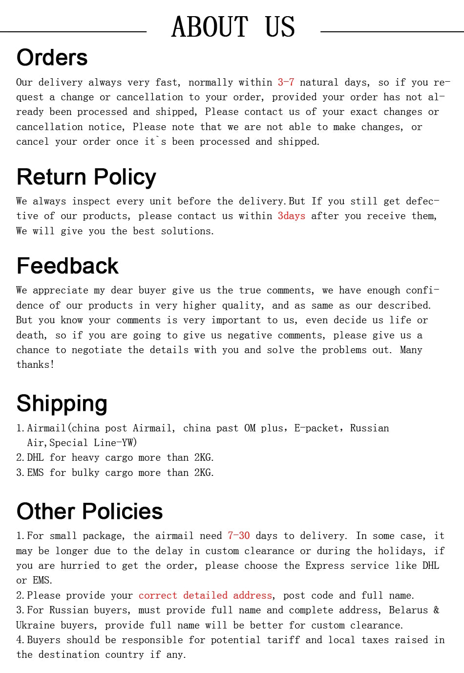 • 🚫 No shipping on weekends or public holidays