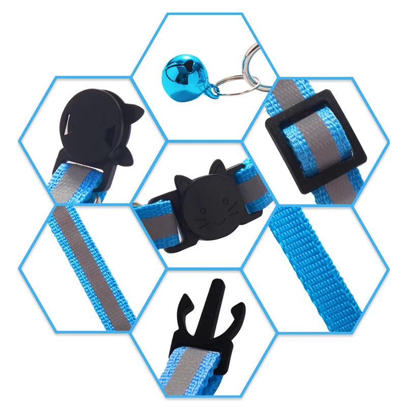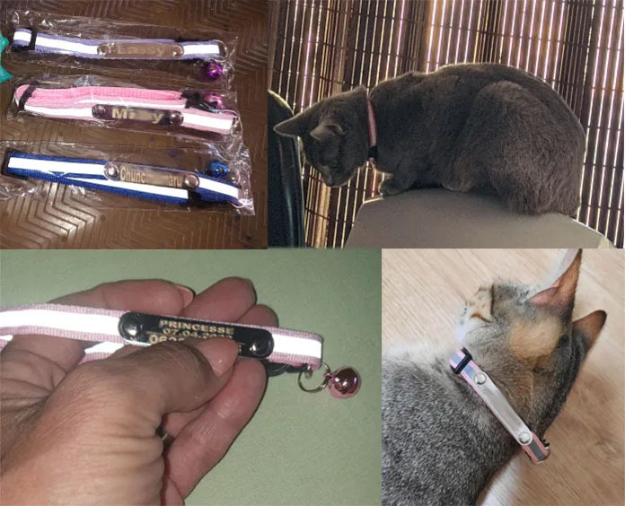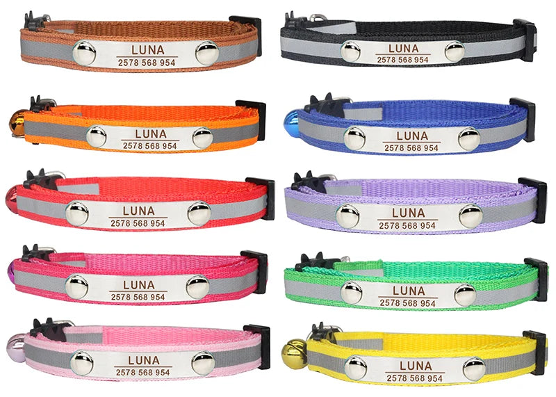 Custom Reflective Cat Collar Personalized ID Adjustable Safety Buckle with Bell Free Engraving Nylon Puppy Kittens Necklace
